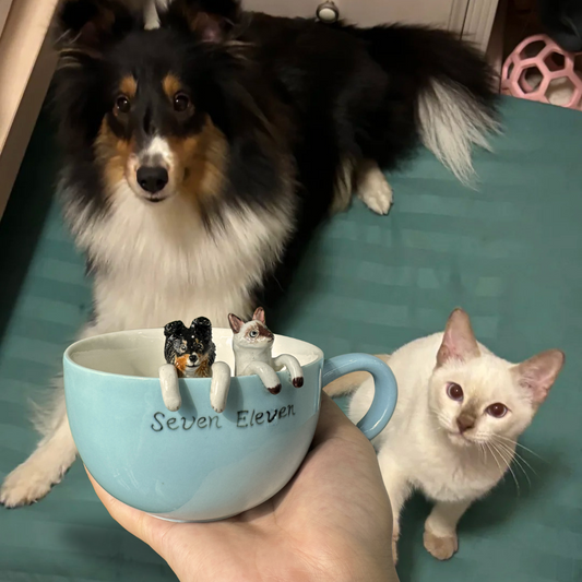 Handcrafted ceramic mugs with custom pet figures – made just for you, one paw at a time.